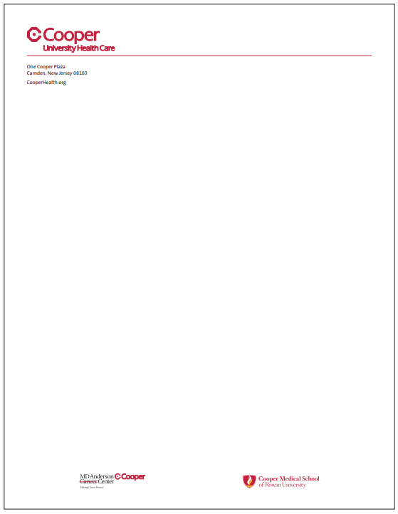 Cooper University Health Care letterhead (example below) is available as a downloadable Word document here.